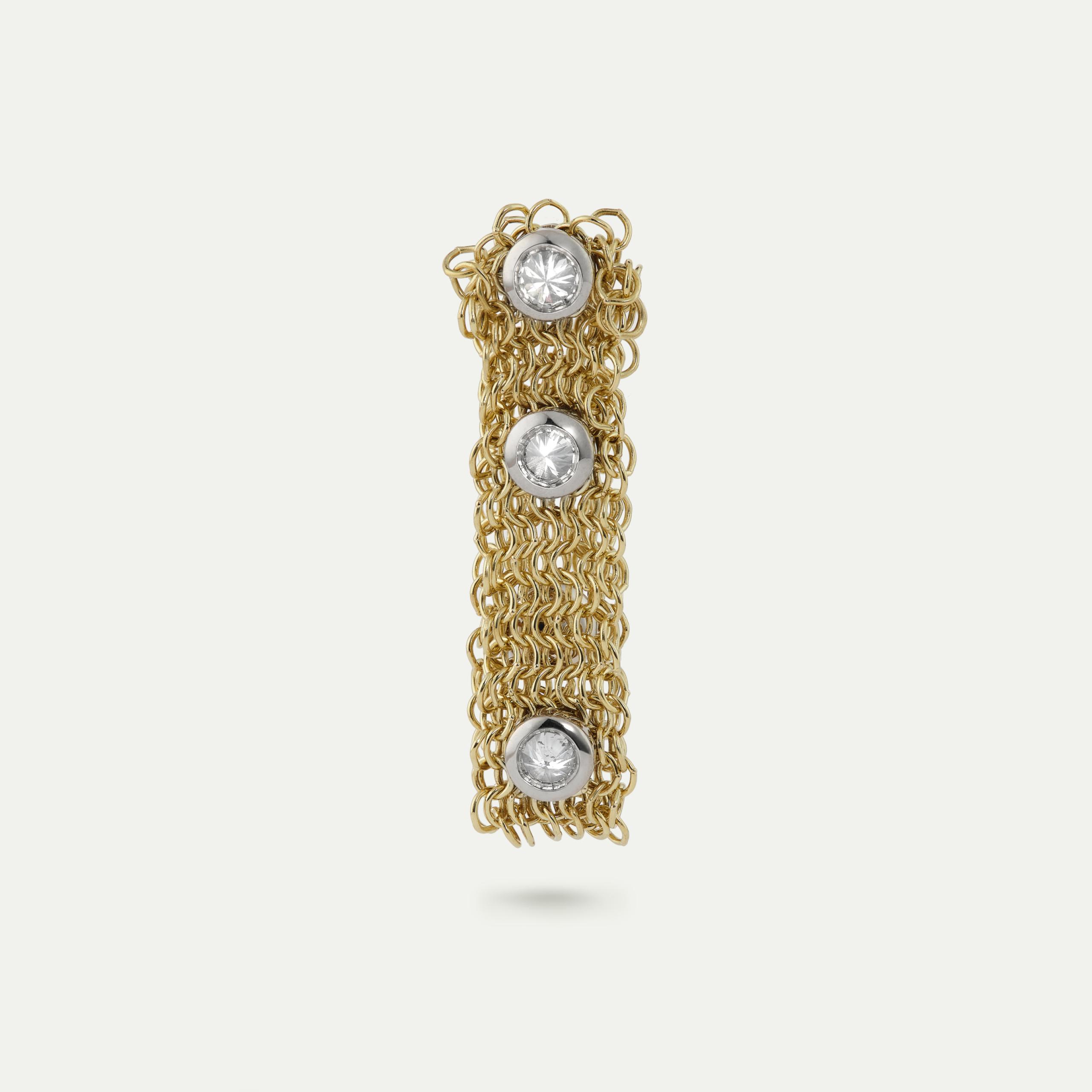 Irreverent and refined, liquid gold chainmail is punctuated by steel-grey diamond studs and white gold in this seductively fluid earring with its undertones of rebellion.