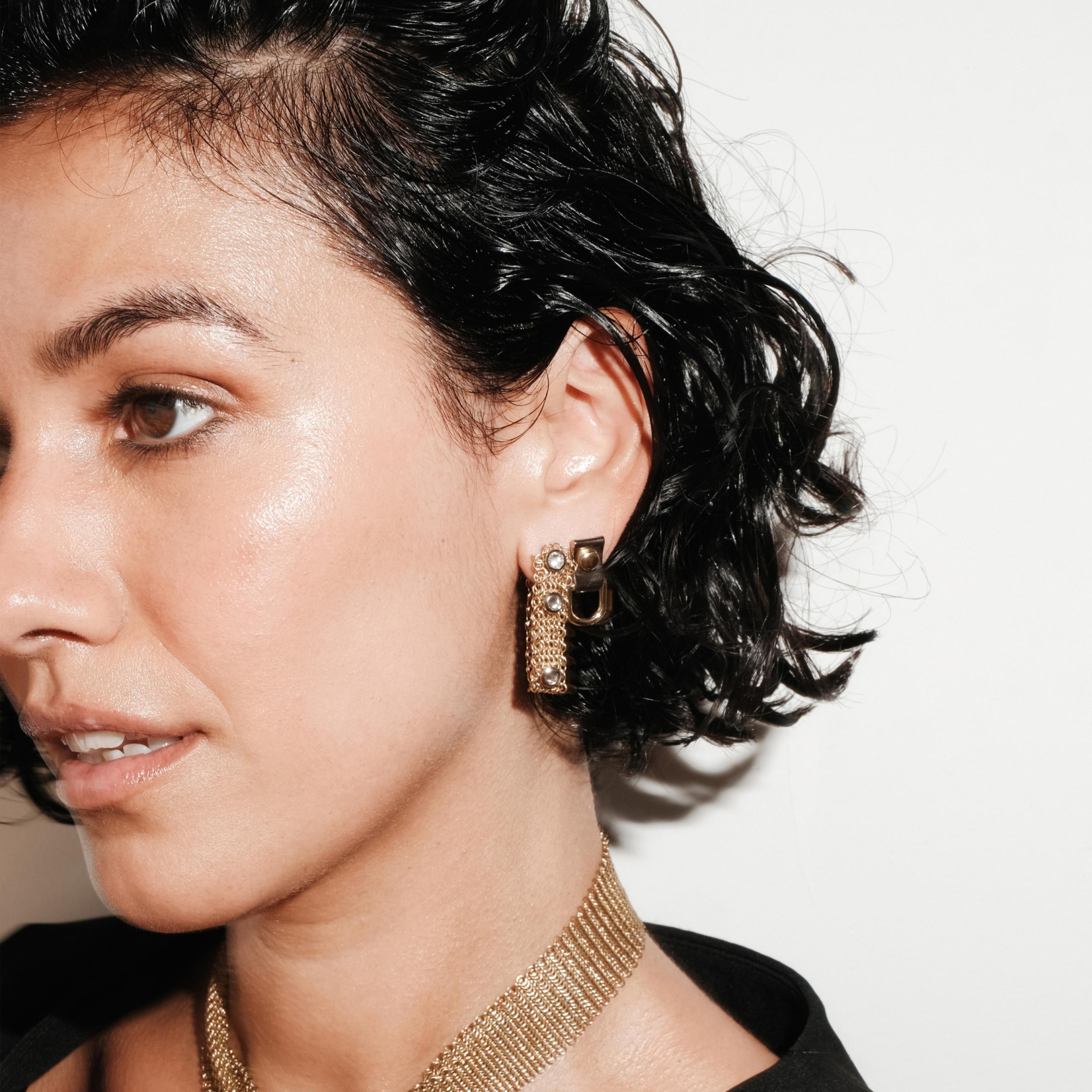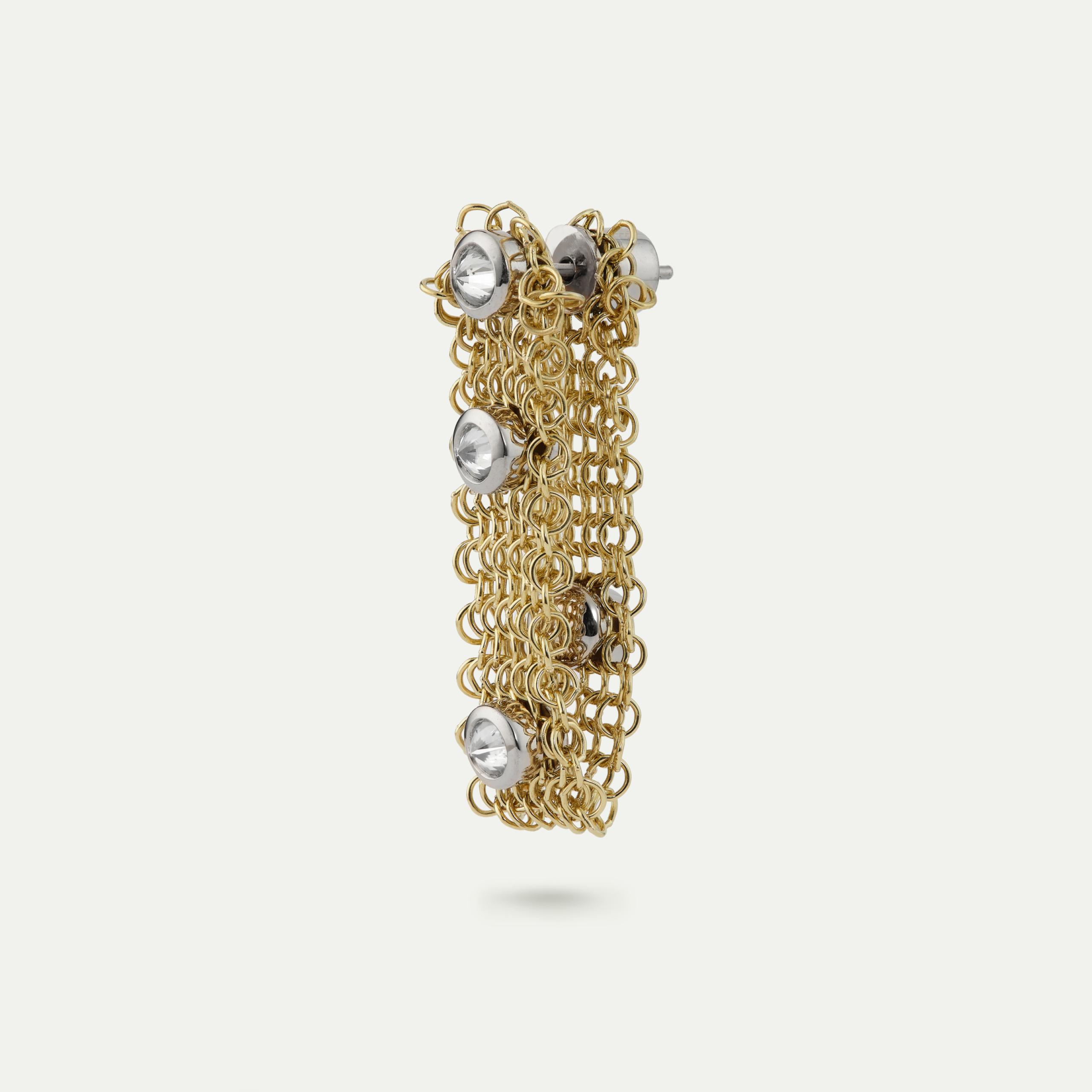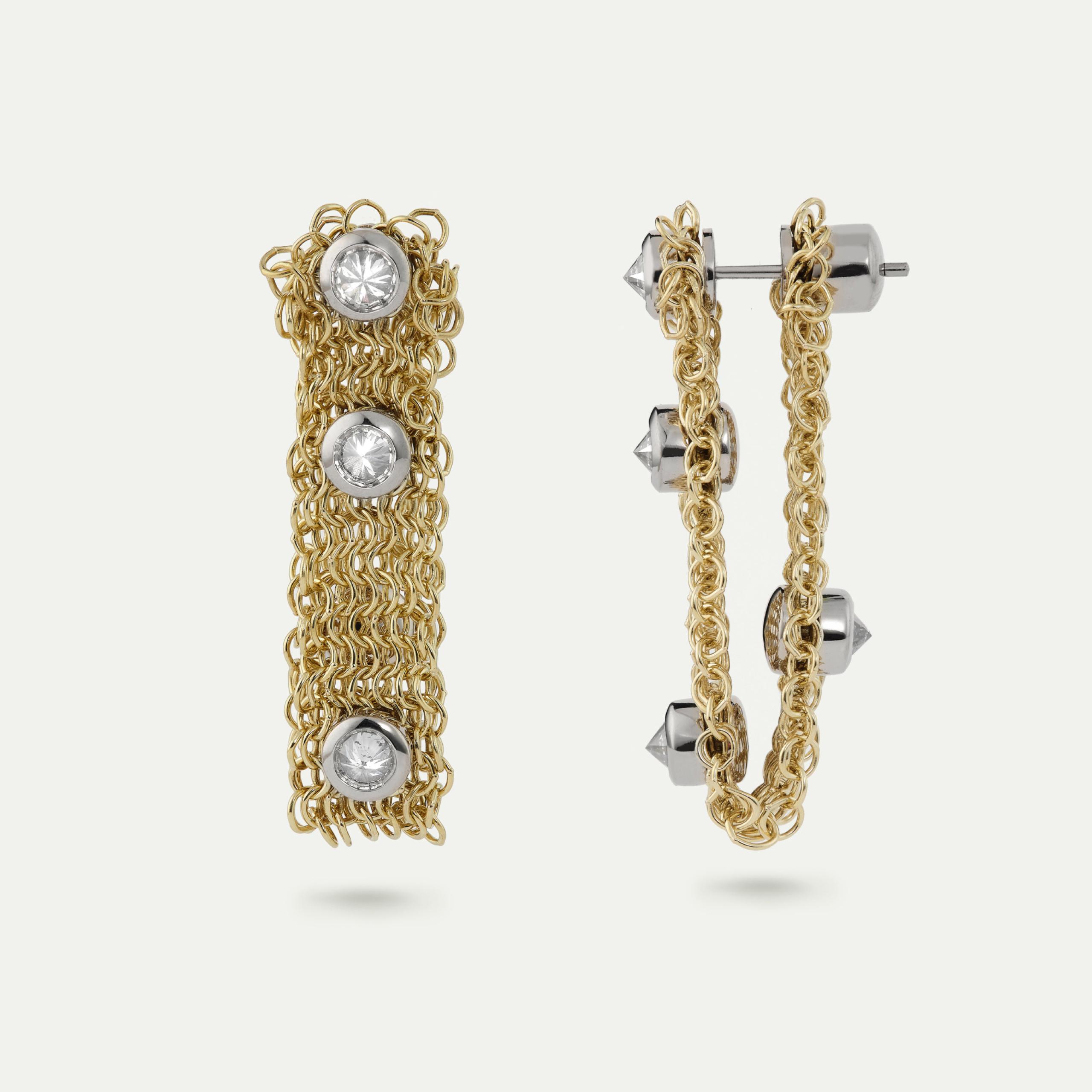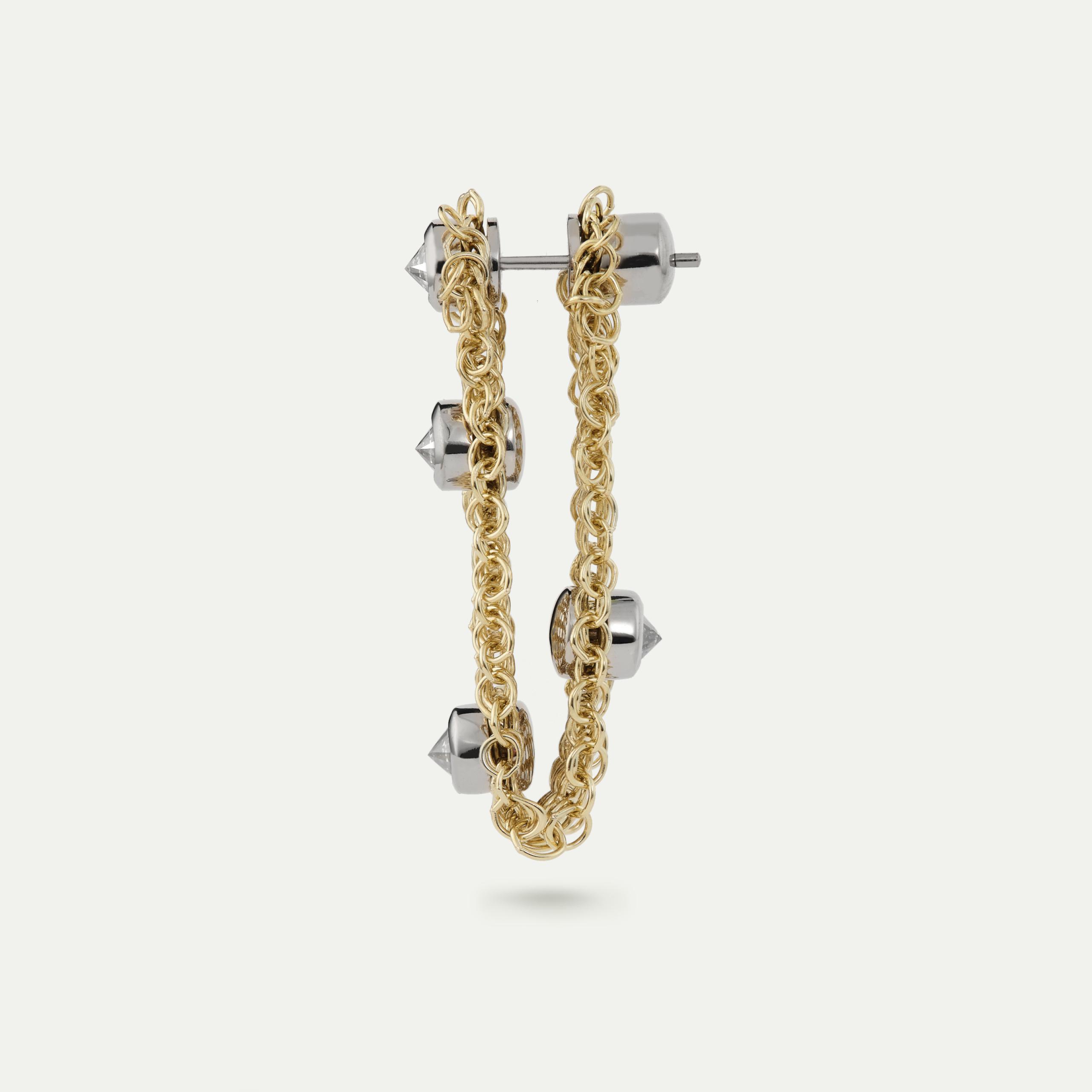 Delightfully subversive gold chainmail earring with steel diamond studs