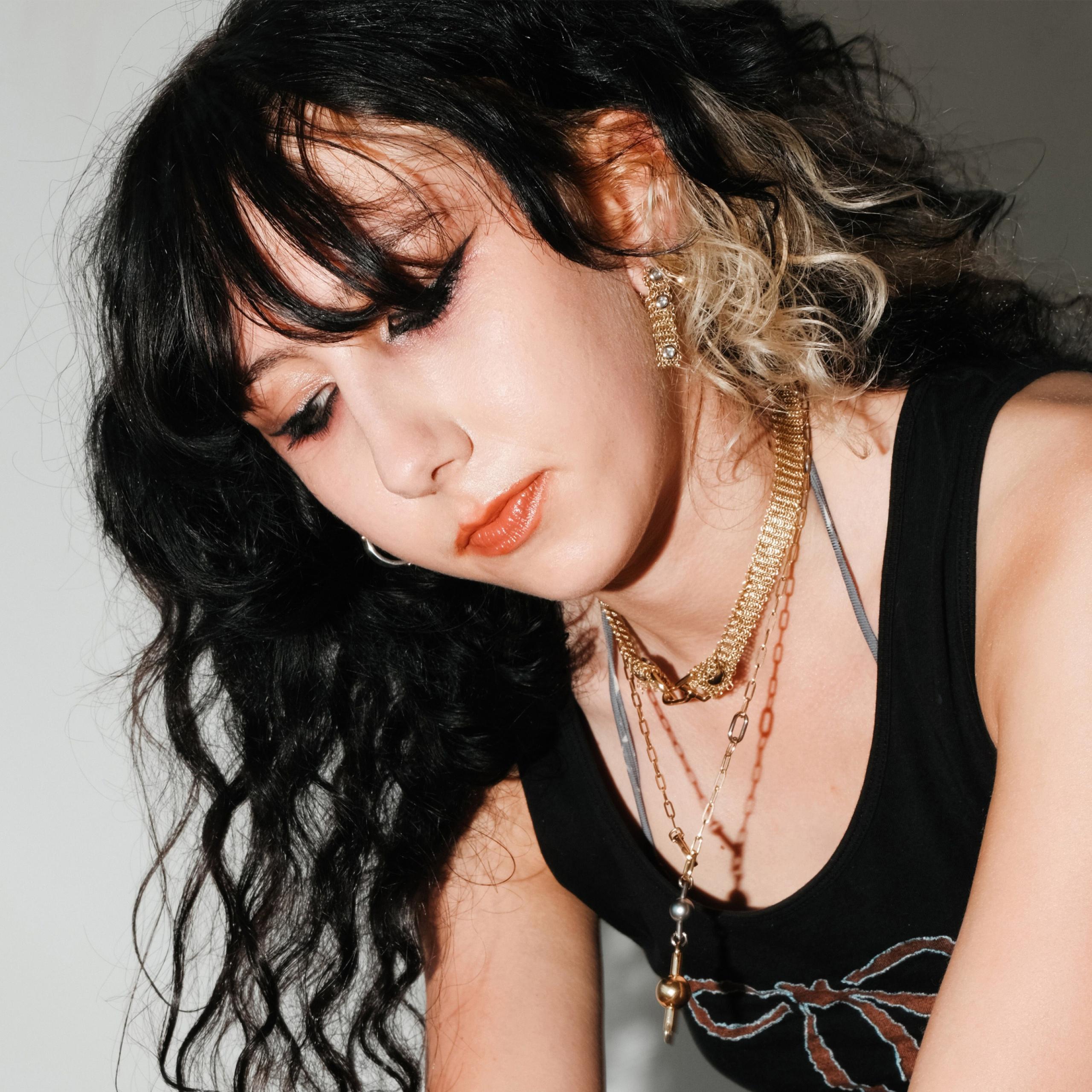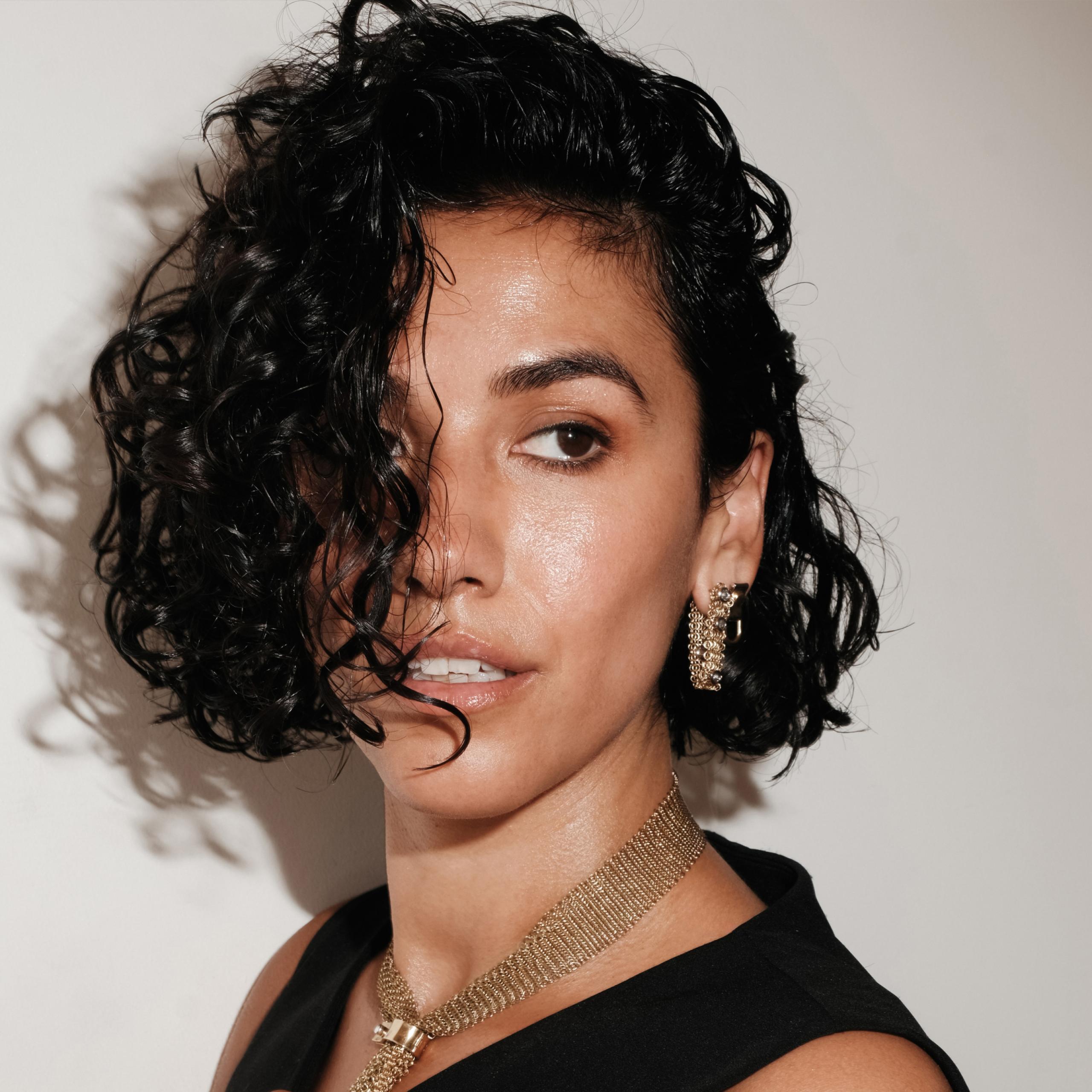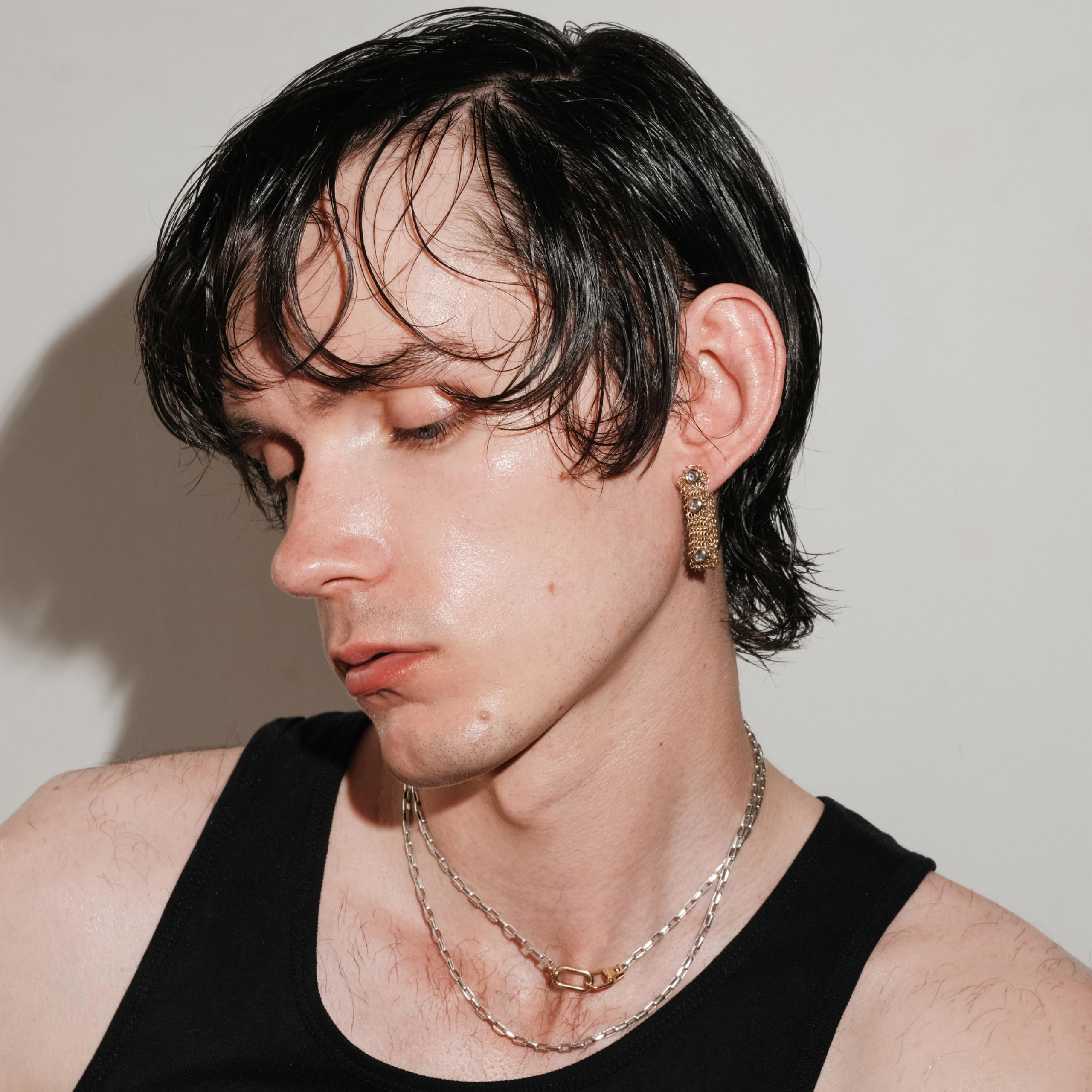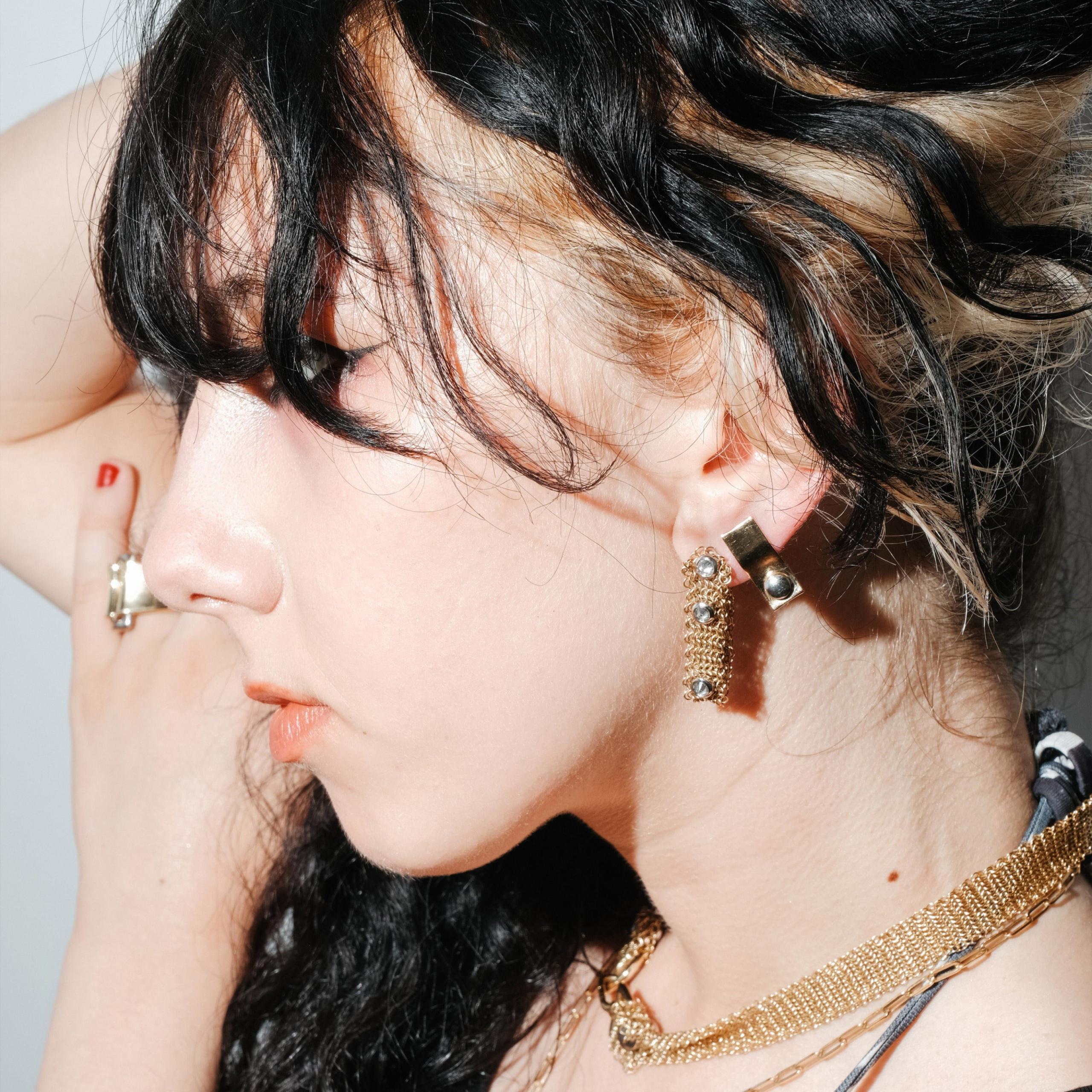 Delightfully subversive gold chainmail earring with steel diamond studs
