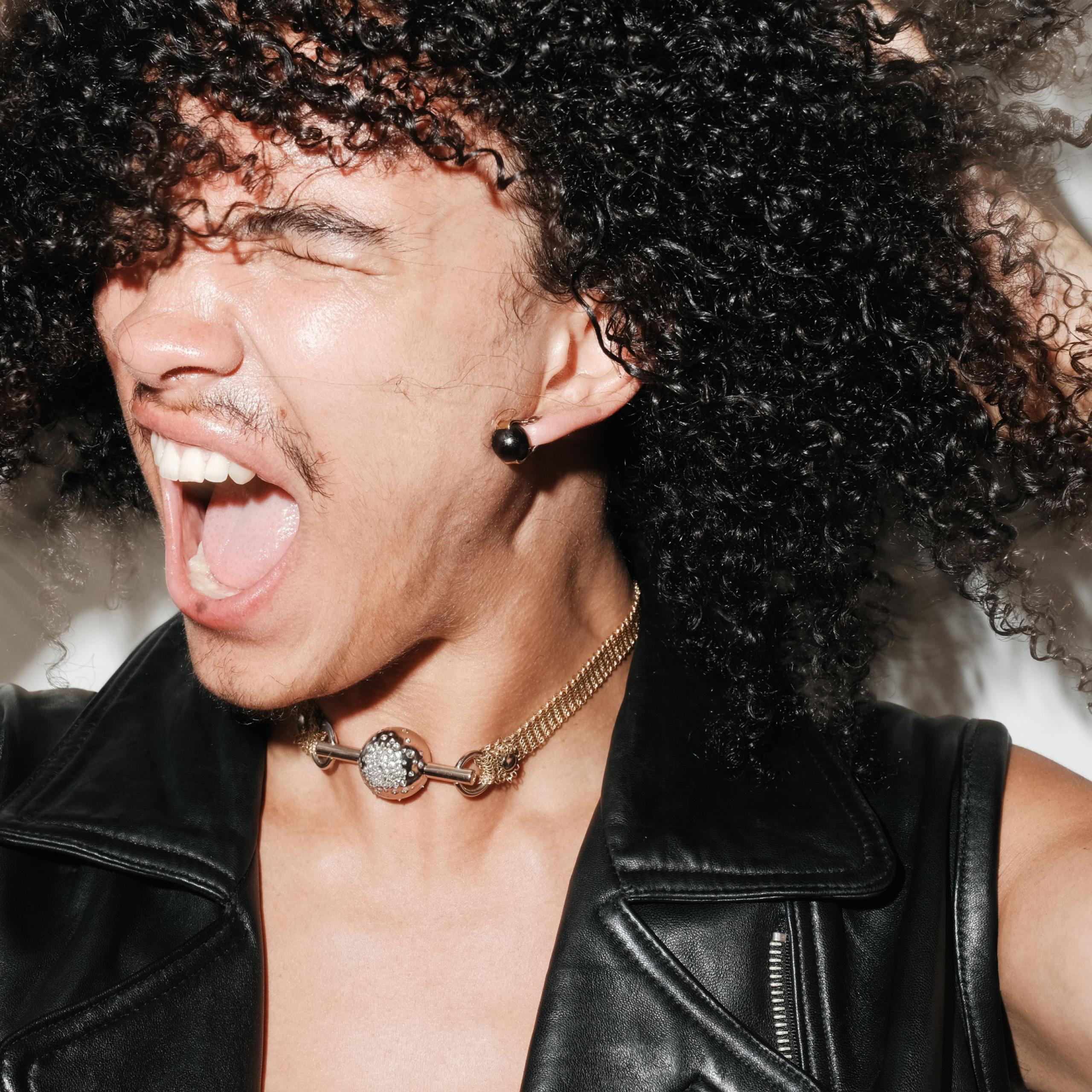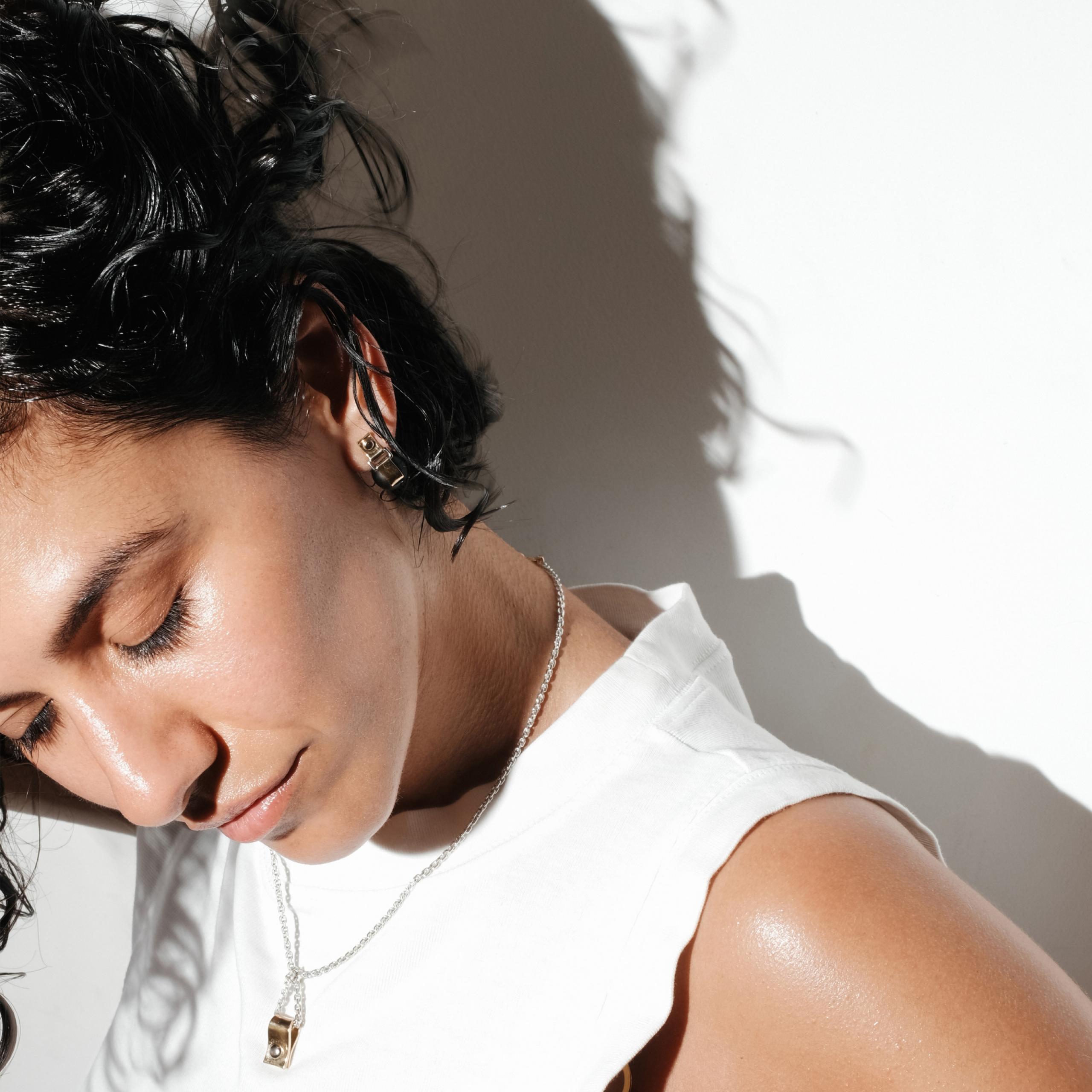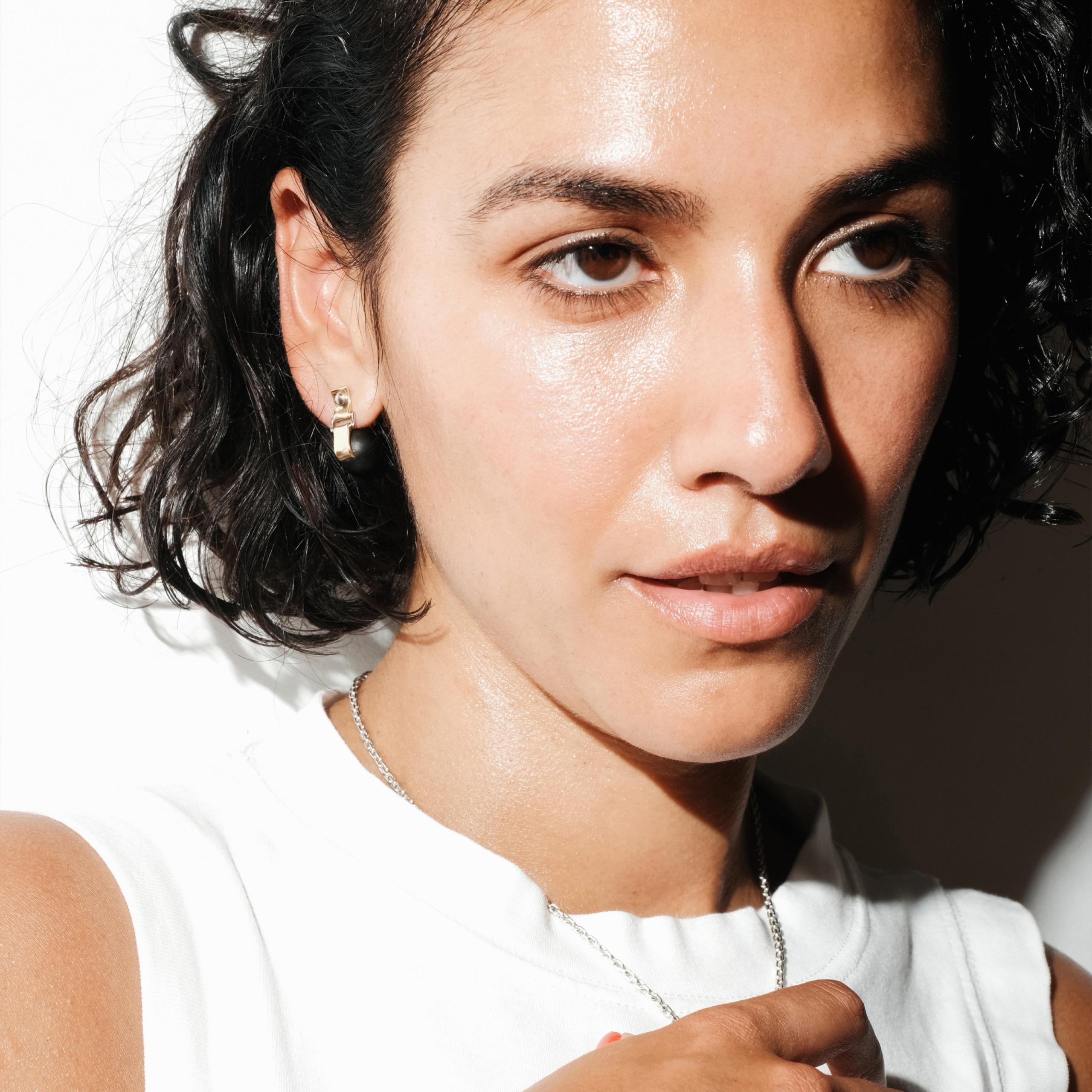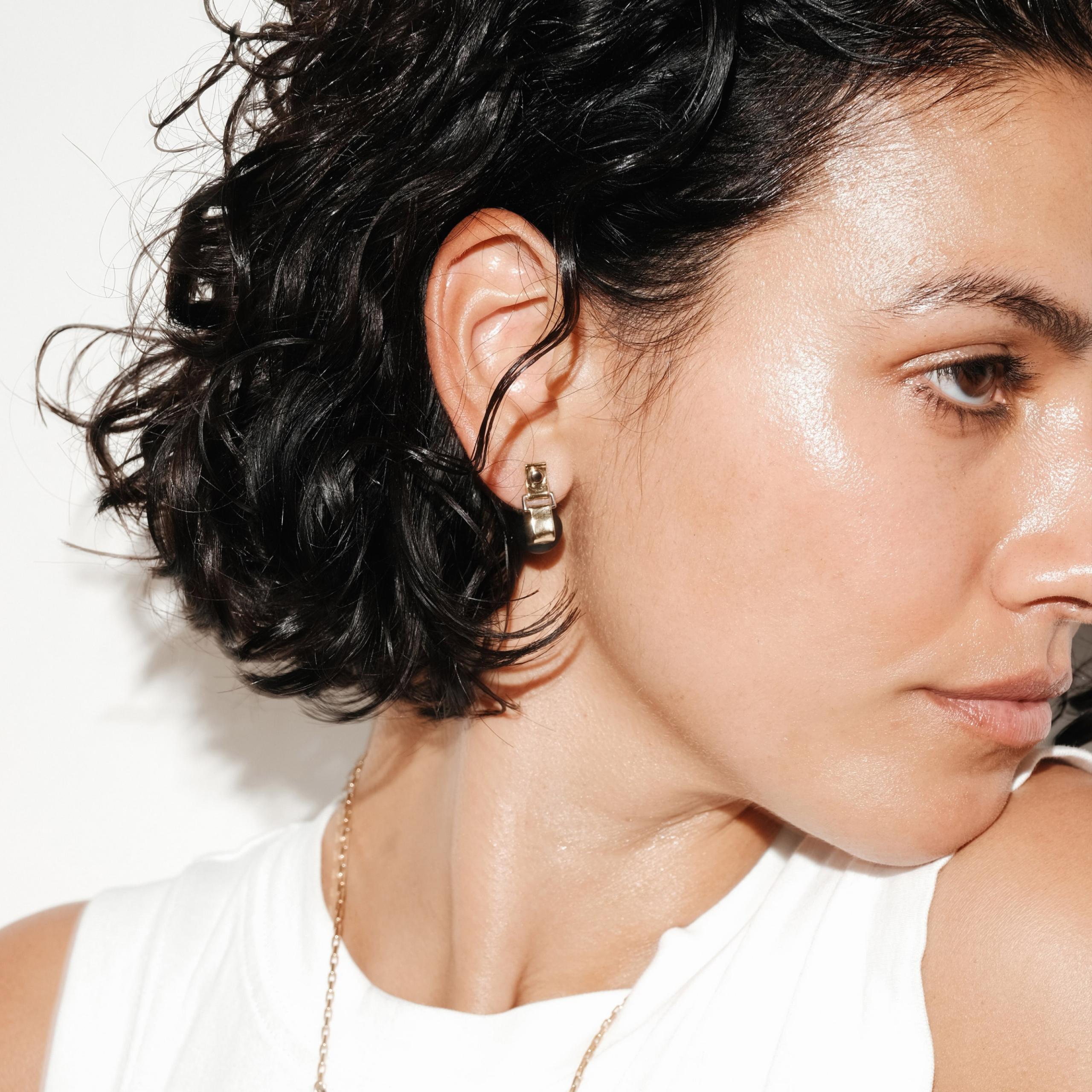 Refined and subversive gold earring with ebony