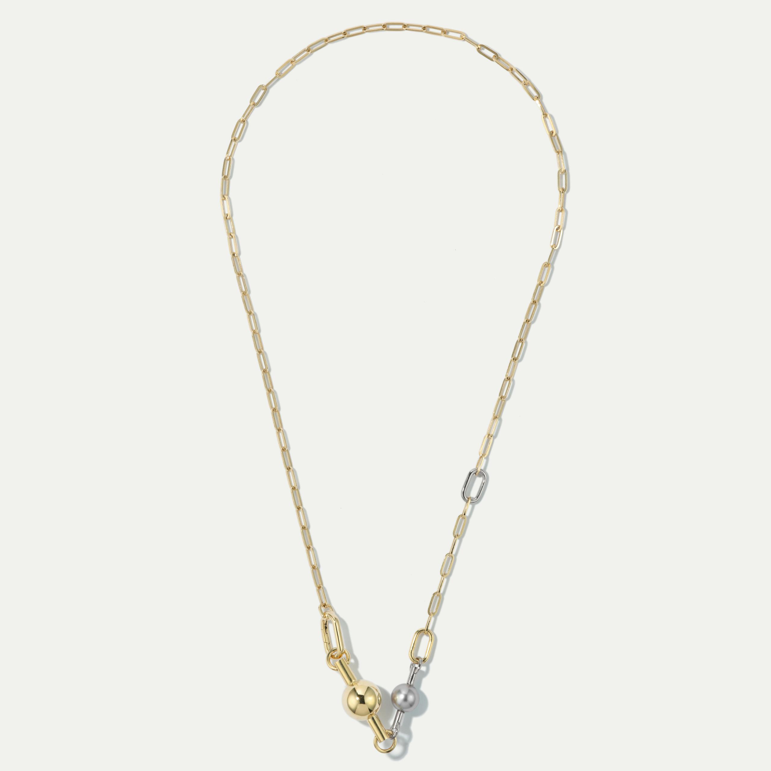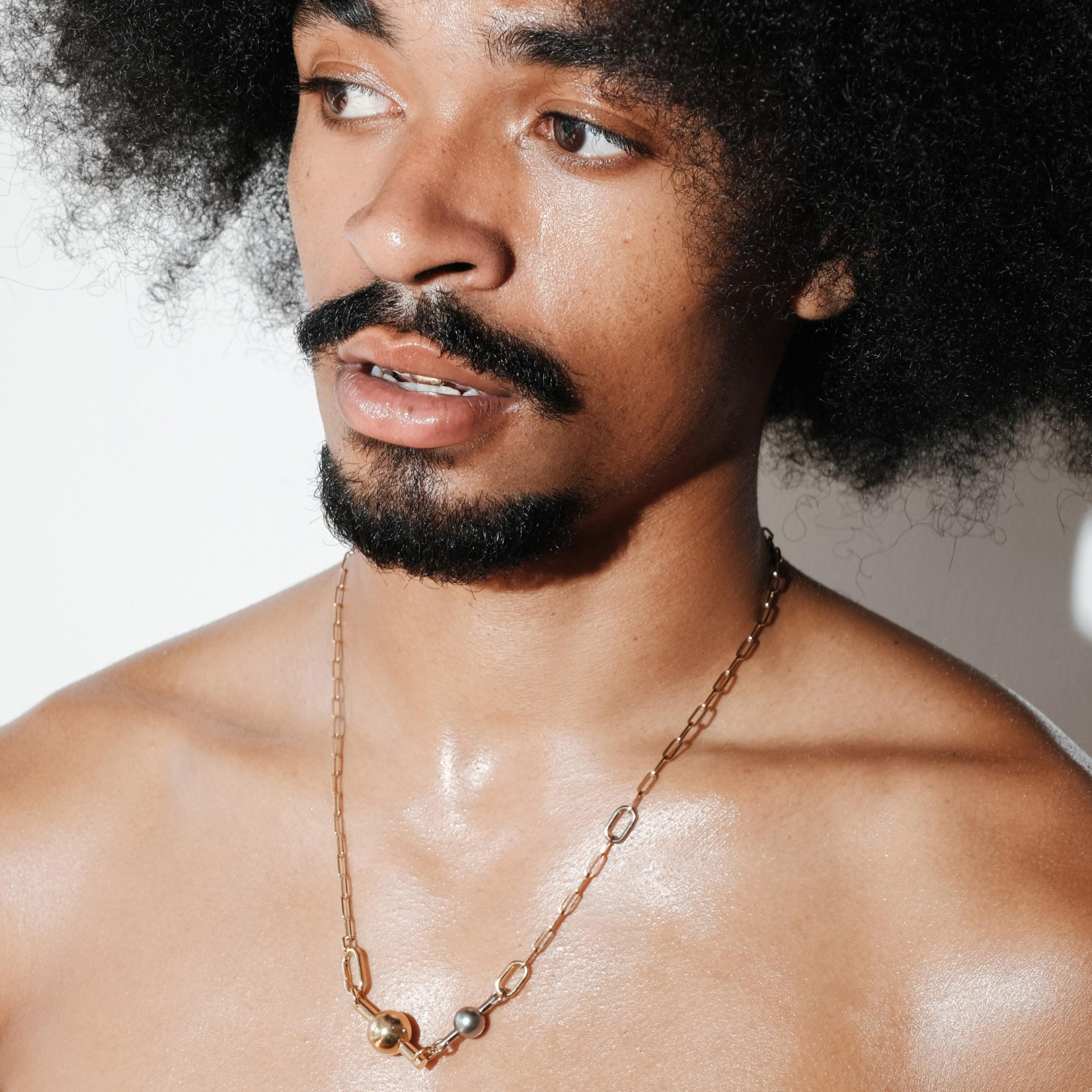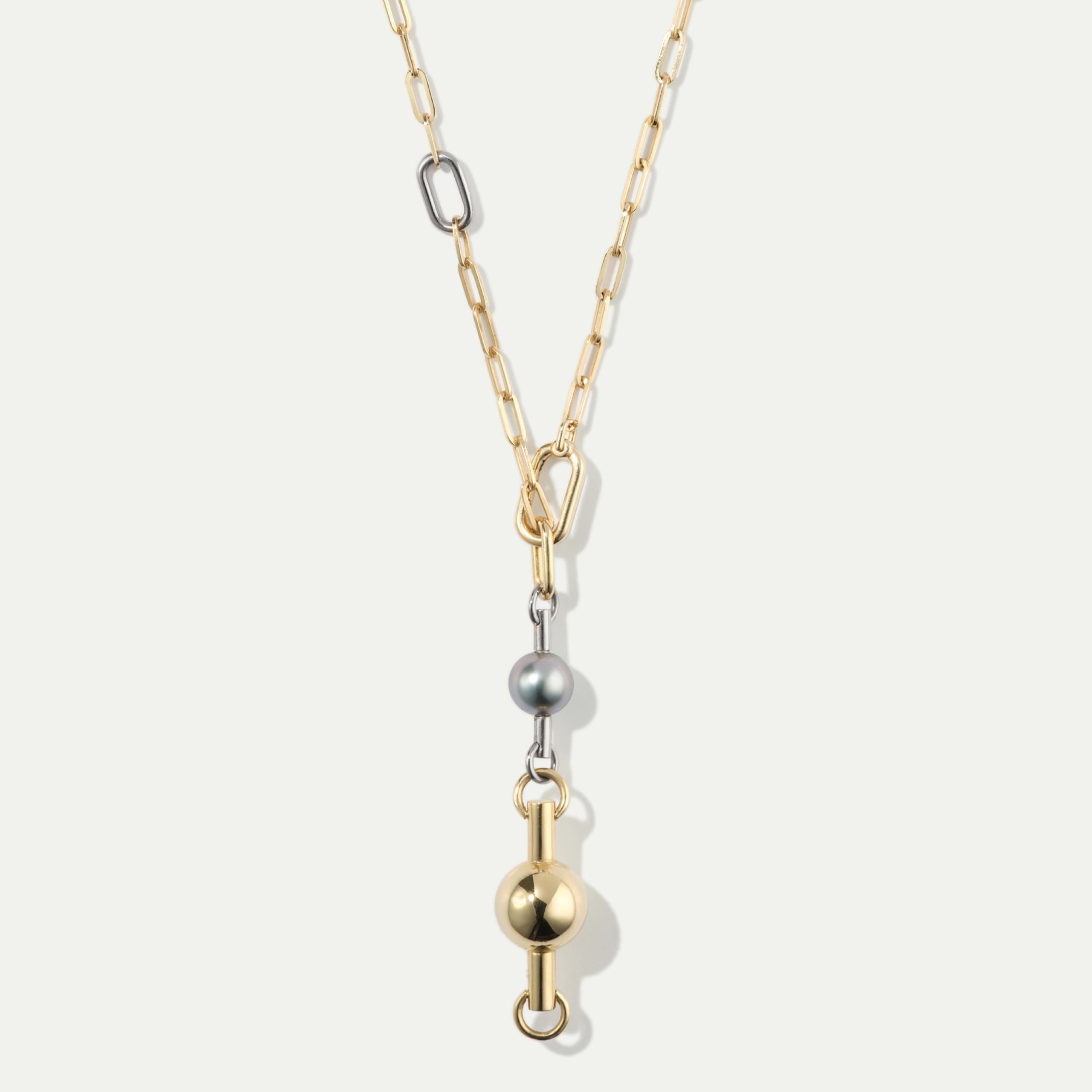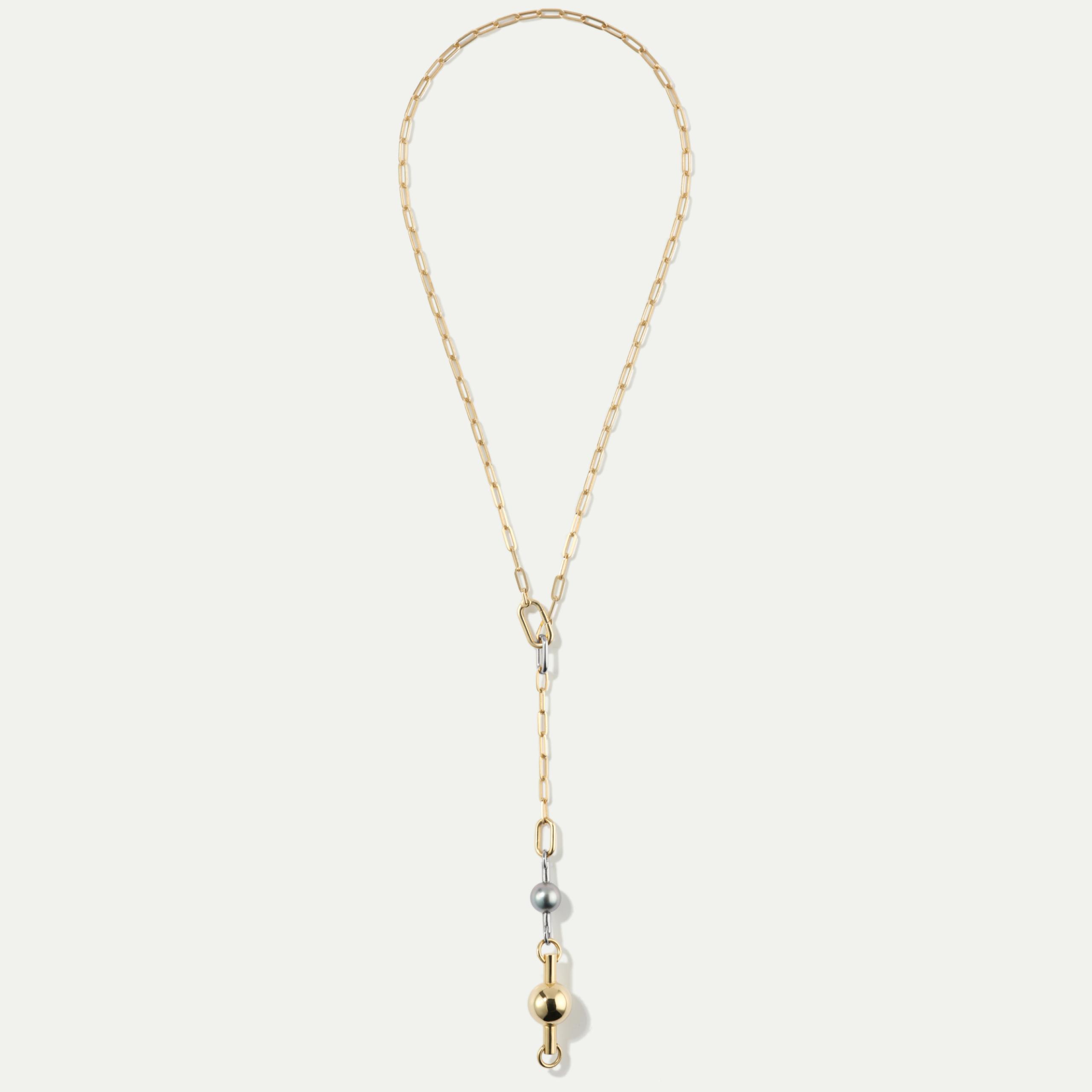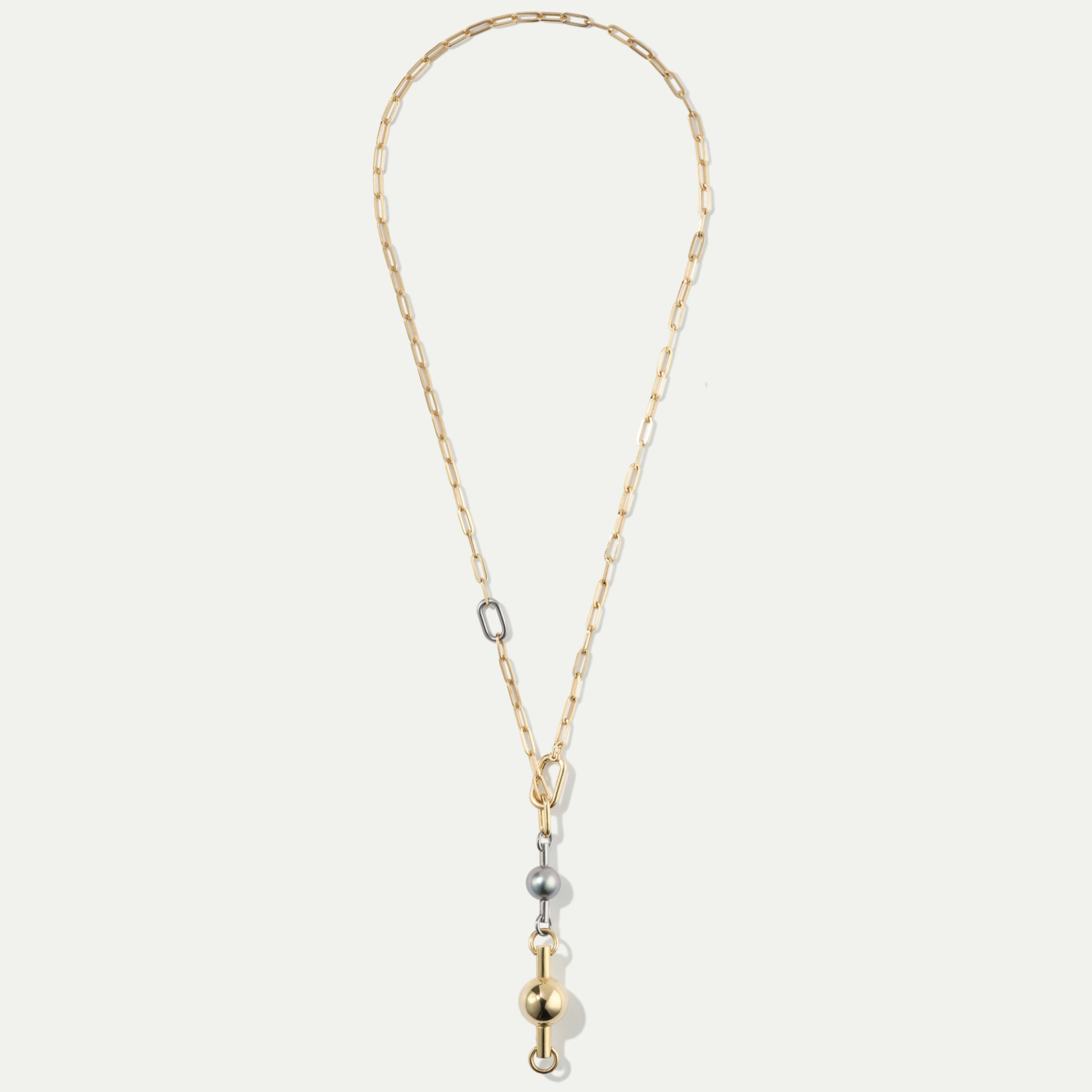 Voluptuous orbs of gold and lustrous steel-grey pearl bring a radical sensuality to this industrial-style chain. Selecting only Tahitian pearls that match in tone to the grey-white of the gold, this piece has a superbly refined colour palette.