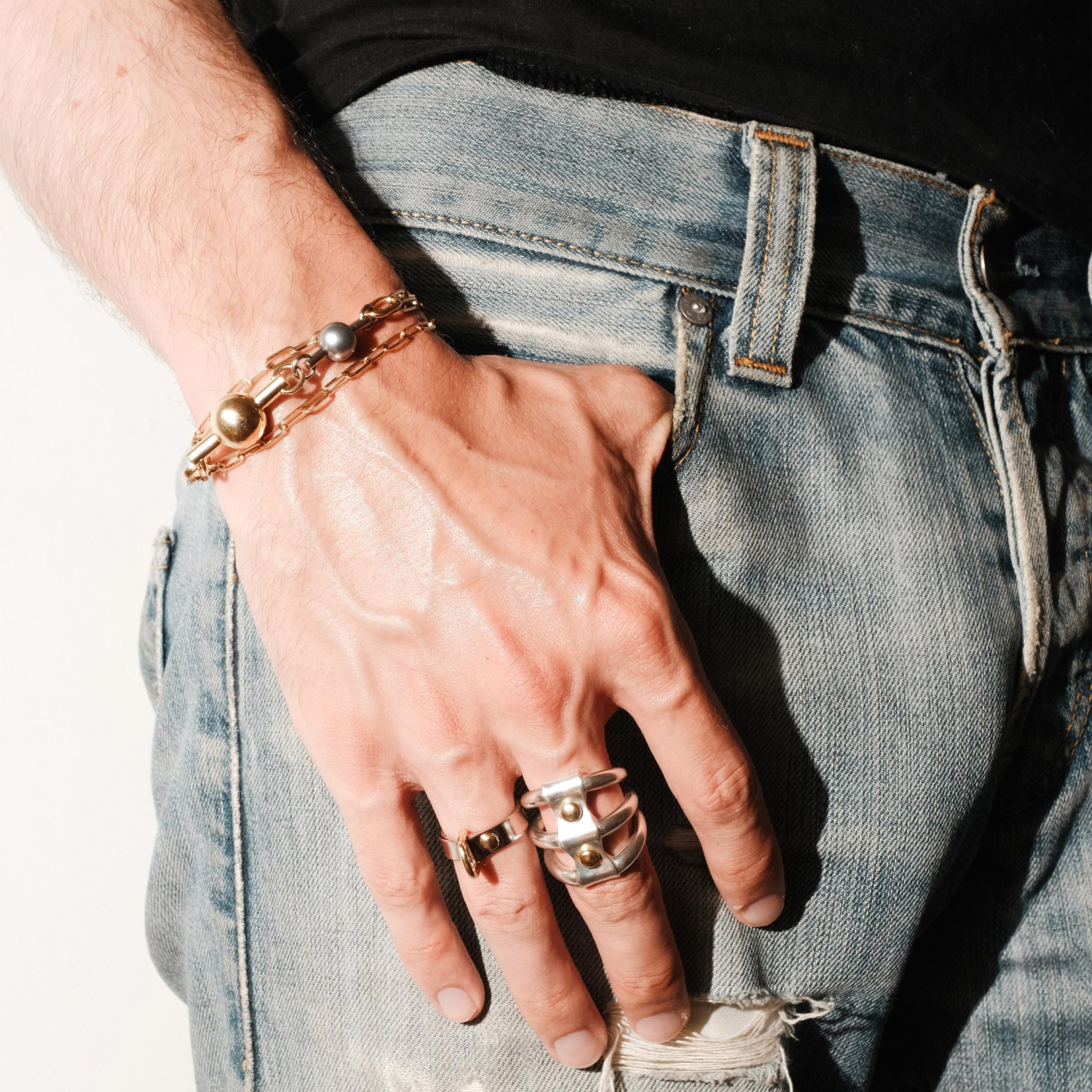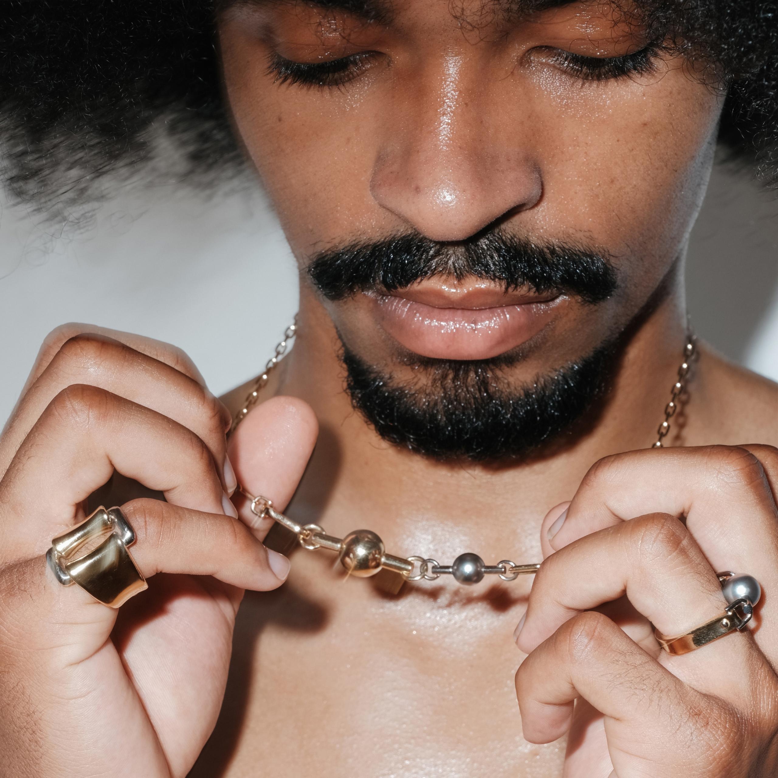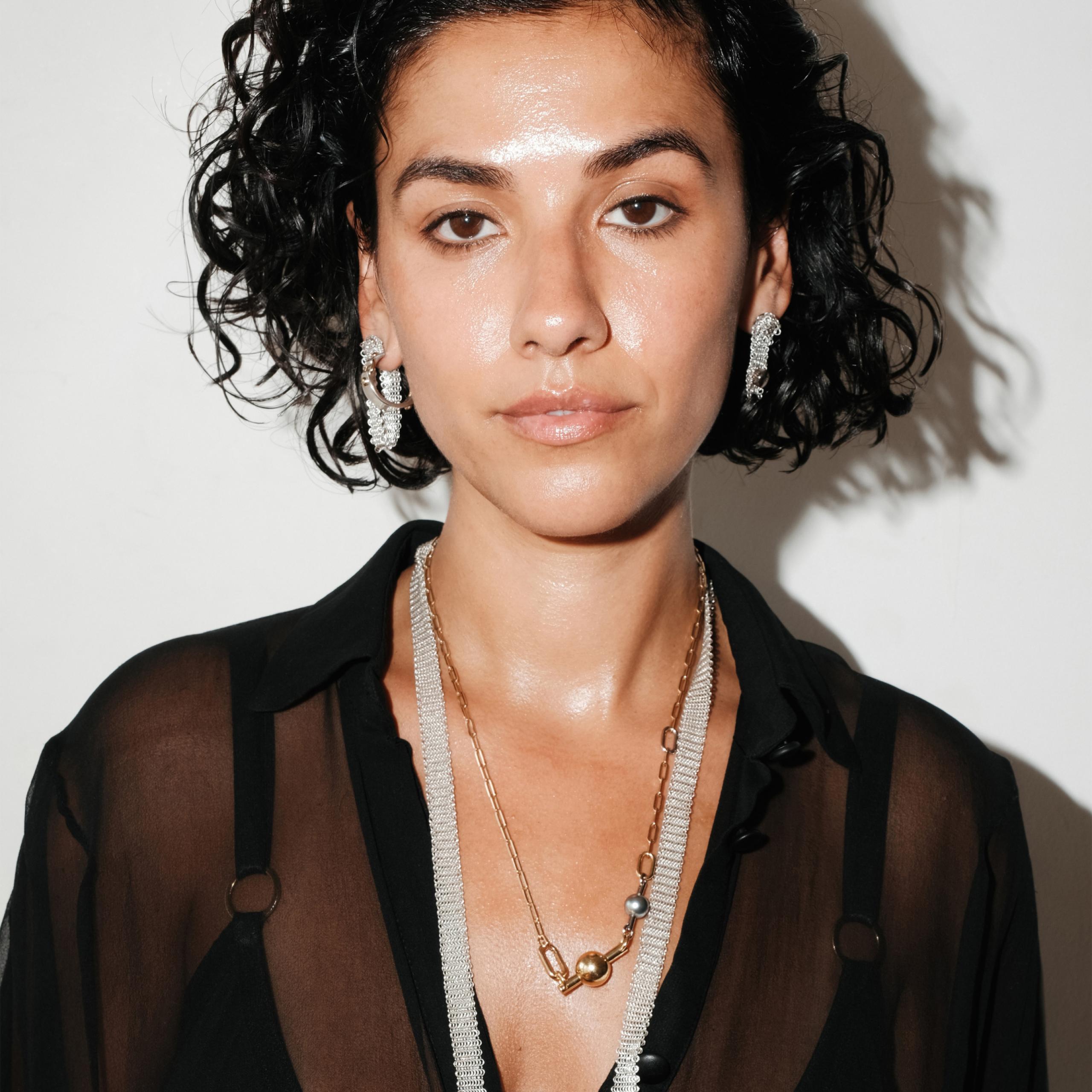 The utilitarian chain and oversized clip bring a punk energy of unflinching rebellion.